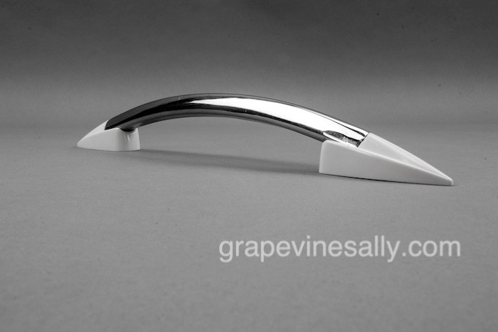 VERY LIMITED SUPPLY - NEW CHROMED Classic Late 1930's Wedgewood Stove Oven Door Handle w/ Pointed White End Caps