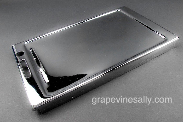 NEW CHROMED original vintage 1940's, 1950's Wedgewood gas stove cooking griddle. Temperature gauge is not included. This is the style with two grease drip holes at the front of griddle.